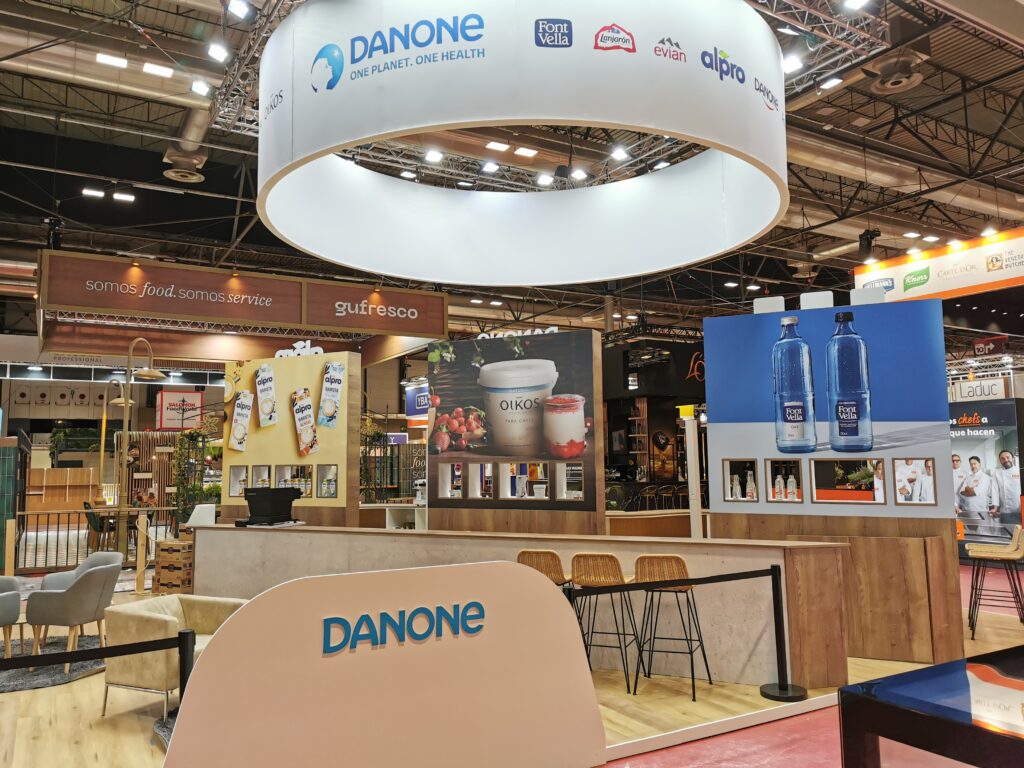 En HIP 2025 diseñamos y produjimos un espacio que mantiene la esencia del grupo Danone, pero con un lenguaje más depurado y actual. Un entorno donde todas sus divisiones conviven de forma equilibrada, comunicando su liderazgo en la industria alimentaria con claridad y fuerza.