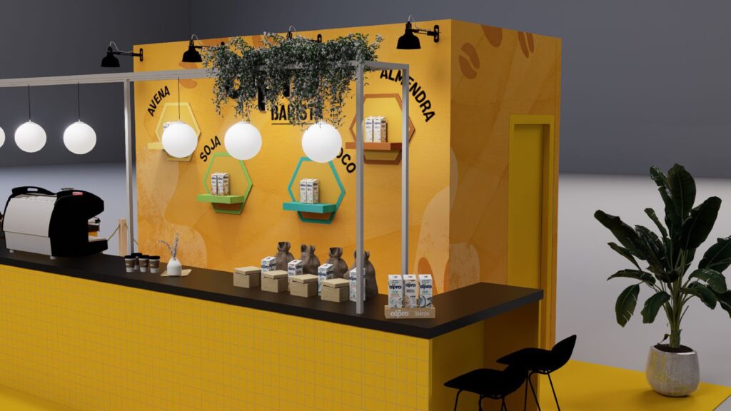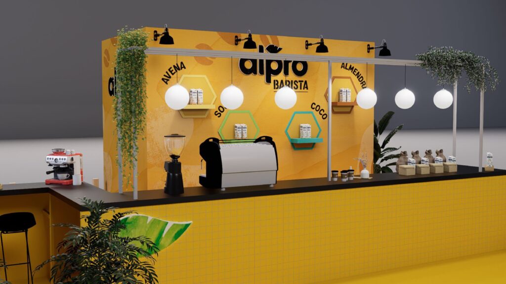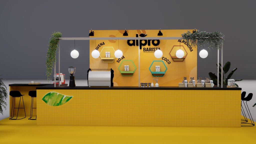 Diseño y producción del stand de Alpro en Coffee Fest 2025 para la presentación de sus productos vegetales. Un stand pensado para flujos dinámicos, degustaciones y una presencia de marca visible y coherente.