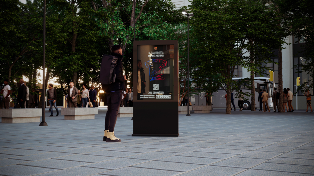 En la segunda fase el reto era desarrollar ¡un mupi flotante! que tenia un carga simbólica importante y sería el centro del evento donde se presento la proyecto.